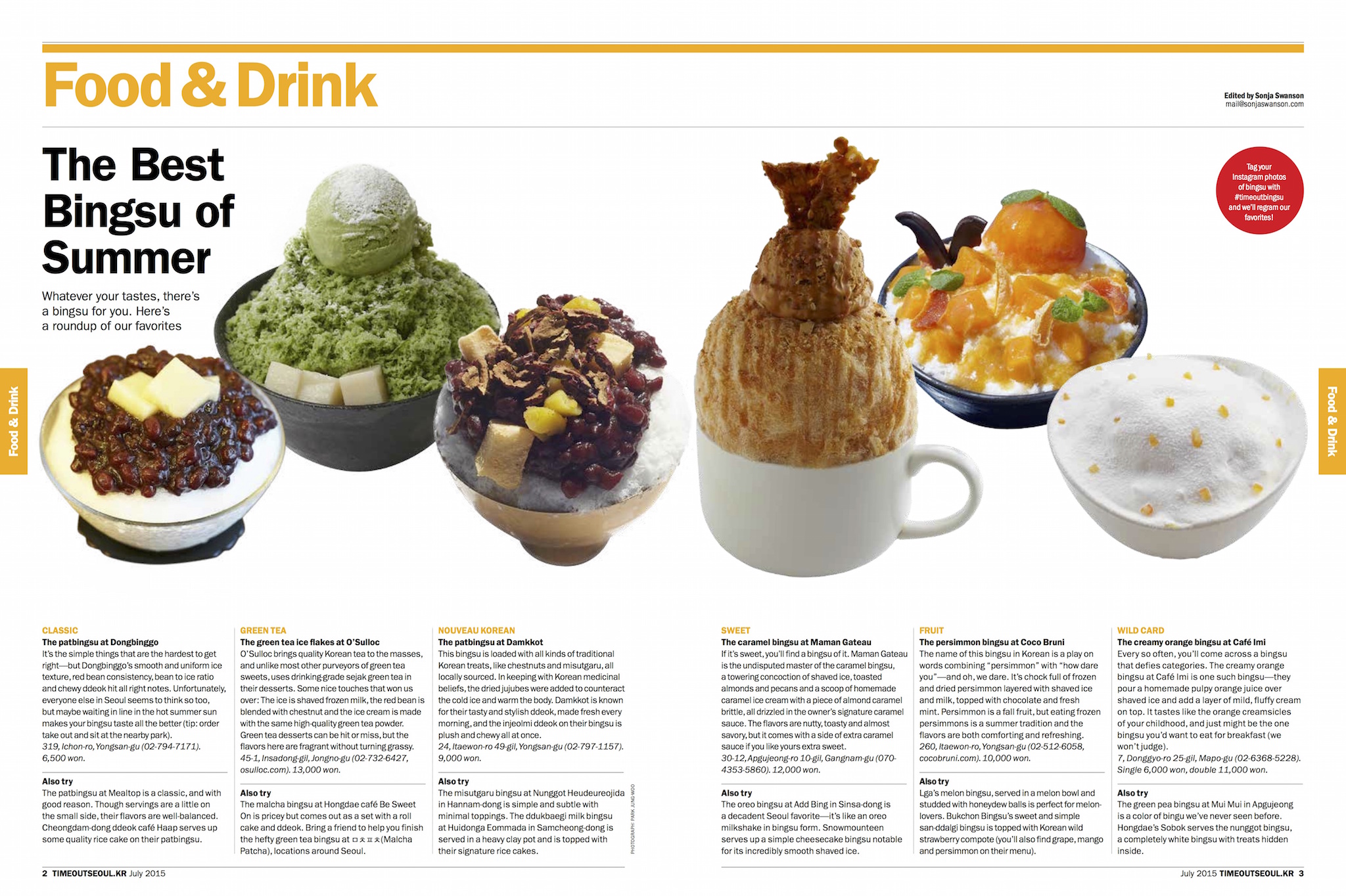 Starting in March 2015, I helped launch the Seoul edition of Time Out Magazine, a bilingual publication that highlights the best of the city’s sights, shopping and eating. I wrote over 100 pieces for both print and web, ranging from short clips on tiny boutiques to longer features on restaurant trends. I also created a style guide for the English edition, which included standardized translations and Romanizations. Time Out Seoul ceased operations in late 2017.